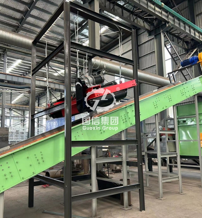 The garbage contains a certain amount of ferromagnetic metal. The size and total amount of the metal materials are small, so they can be selected out by the action of magnetism. A magnetic separator is installed above the belt conveyor for the screened material and above the belt conveyor after magnetic separation to recover the metal materials. The metal materials are adsorbed on the outer surface of the discharge belt of the magnetic separator and fall into the collection box as the discharge belt moves for recycling and sale.