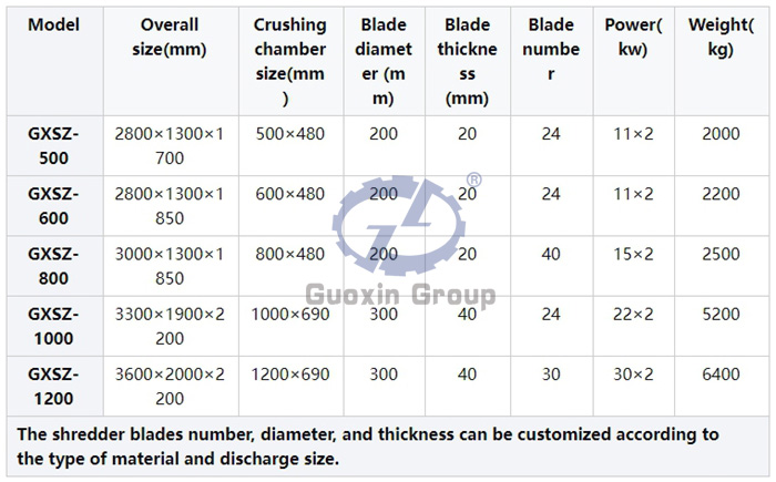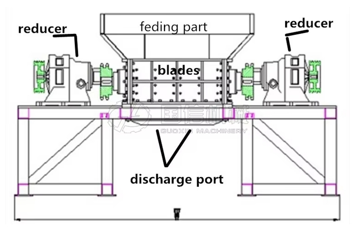 Double shaft shredder blades number, diameter, and thickness can be customized according to the type of material and discharge size.